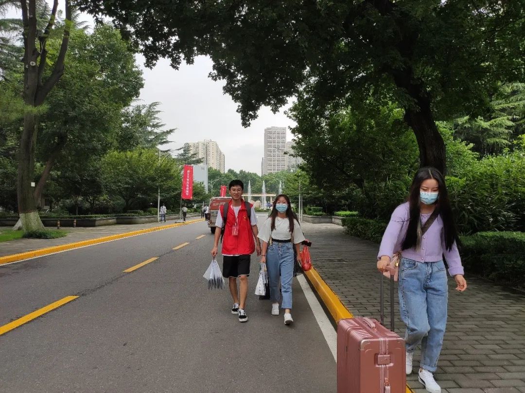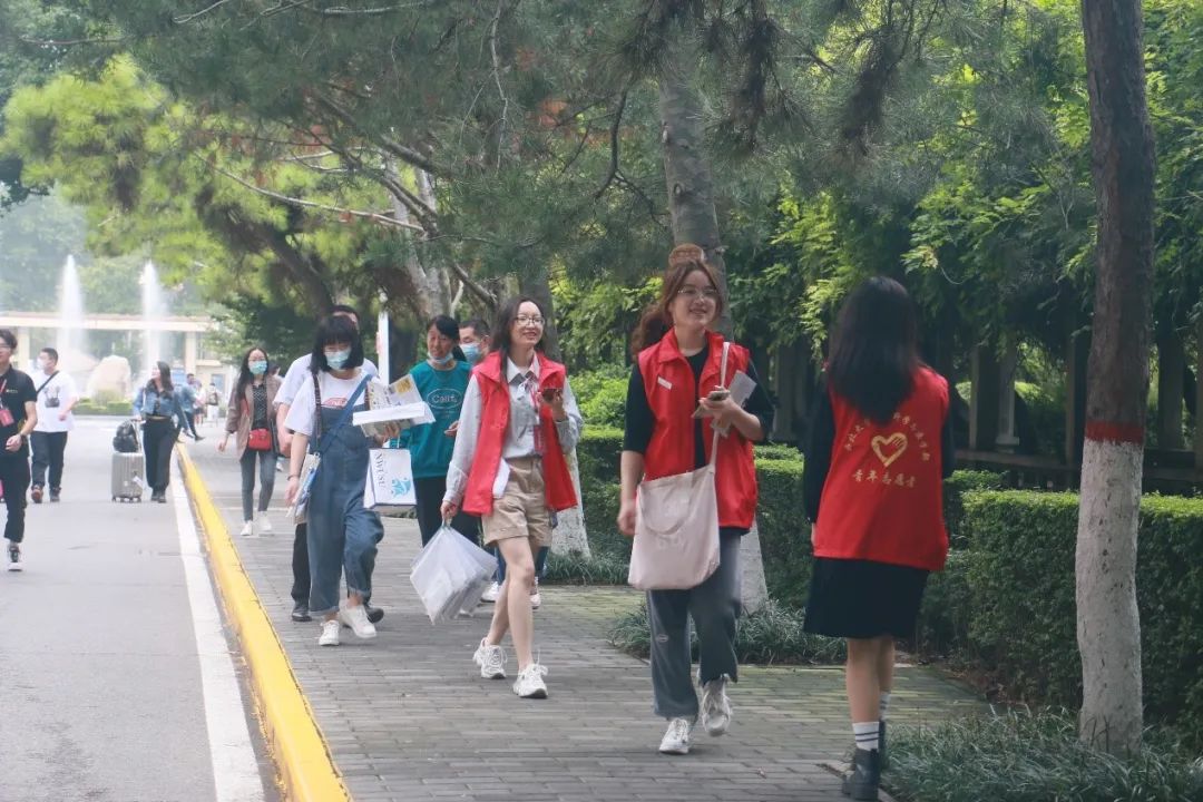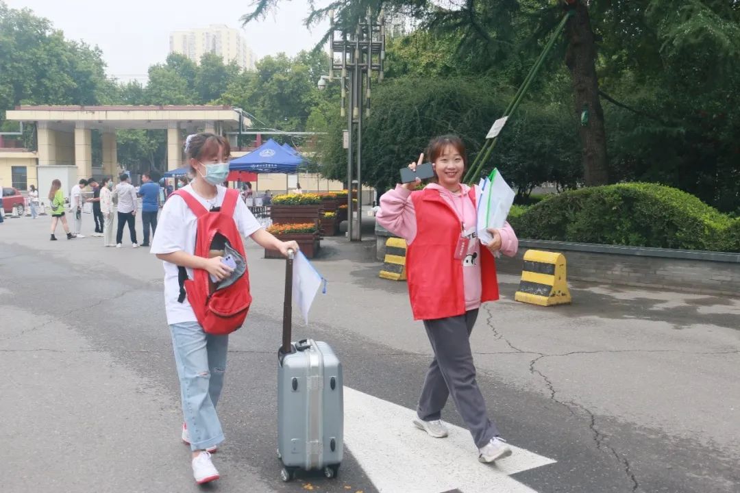 秋风送爽,阴凉的天气既不燥热也不闷,趁着这样的好天气,新同学们开始陆陆续续地踏入校门。穿着红色马甲的志愿者充满热情地迎接新同学,帮助他们提行李,给他们带路,让新同学们第一时间体会到学院的温暖氛围。