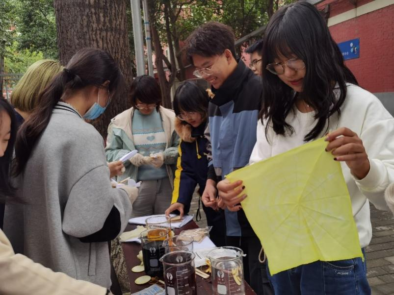 在校园内,他们还将“帝王紫”染料和传统的扎染工艺结合起来,在校园内开展了扎染DIY活动,“当看到那抹来自远古的帝王紫在白布上晕染开时,内心的自豪感便油然而生。”队内成员感慨道。