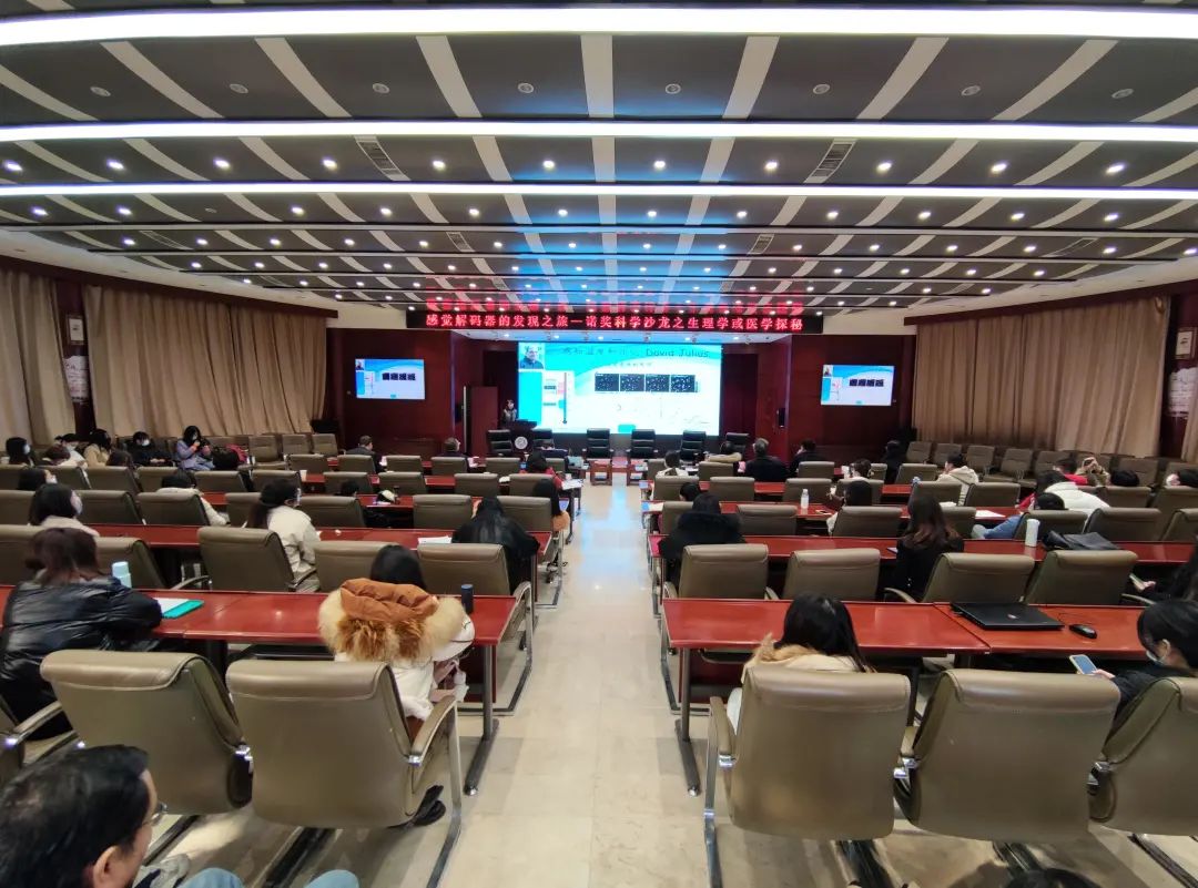 生命学院乔博灵教授作了题为“感觉解码器的发现之旅—诺奖科学沙龙之生理学/医学探索”的报告,解读了今年诺贝尔生理学或医学奖的学术贡献和重要意义。