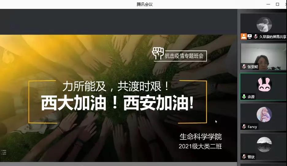 自疫情发生以来,在校领导的坚强领导下,生命科学与医学部联合食品学院、地质学系、化工学院以及国际交流学院共筑战疫堡垒,联防联控一盘棋,画出最大“太白同心圆”。第一时间贯彻省、市、区疫情防控部署要求,迅速进入战斗状态,建立起辅导员、党员突击队、宿舍楼长所组成的扁平化信息排查和管控机制,实现了信息快速、精准、高效多向流动,做到了底数清、情况明、动态查、对策准。通过联动开展线上抗疫晚会,为全体师生送去暖心物质,坚定太白校区“上下一张网,全校一条心”的抗疫信心。