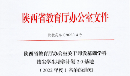 近日,陕西省教育厅2022年度基础学科拔尖学生培养计划2.0基地评选结果公布,学部“生物科学拔尖学生培养基地”首批入围。此次评选共计9所高校11个学科入选。
