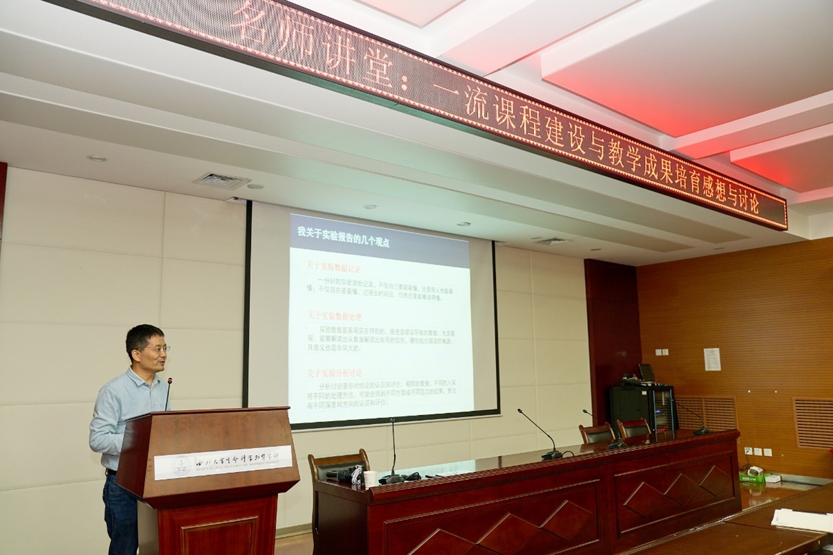 为全面落实立德树人根本任务,切实提高广大教师的教育教学水平和课程建设水平,进一步发挥教学名师引领示范作用,5月31日,学部邀请我校物理学院教授、陕西高等学校教学名师郑新亮教授做客“名师讲堂”,为学部教师作“一流课程建设与教学成果培育感想与讨论”的专题报告。报告会由必赢bwin网页版官网副院长张亚妮教授主持。