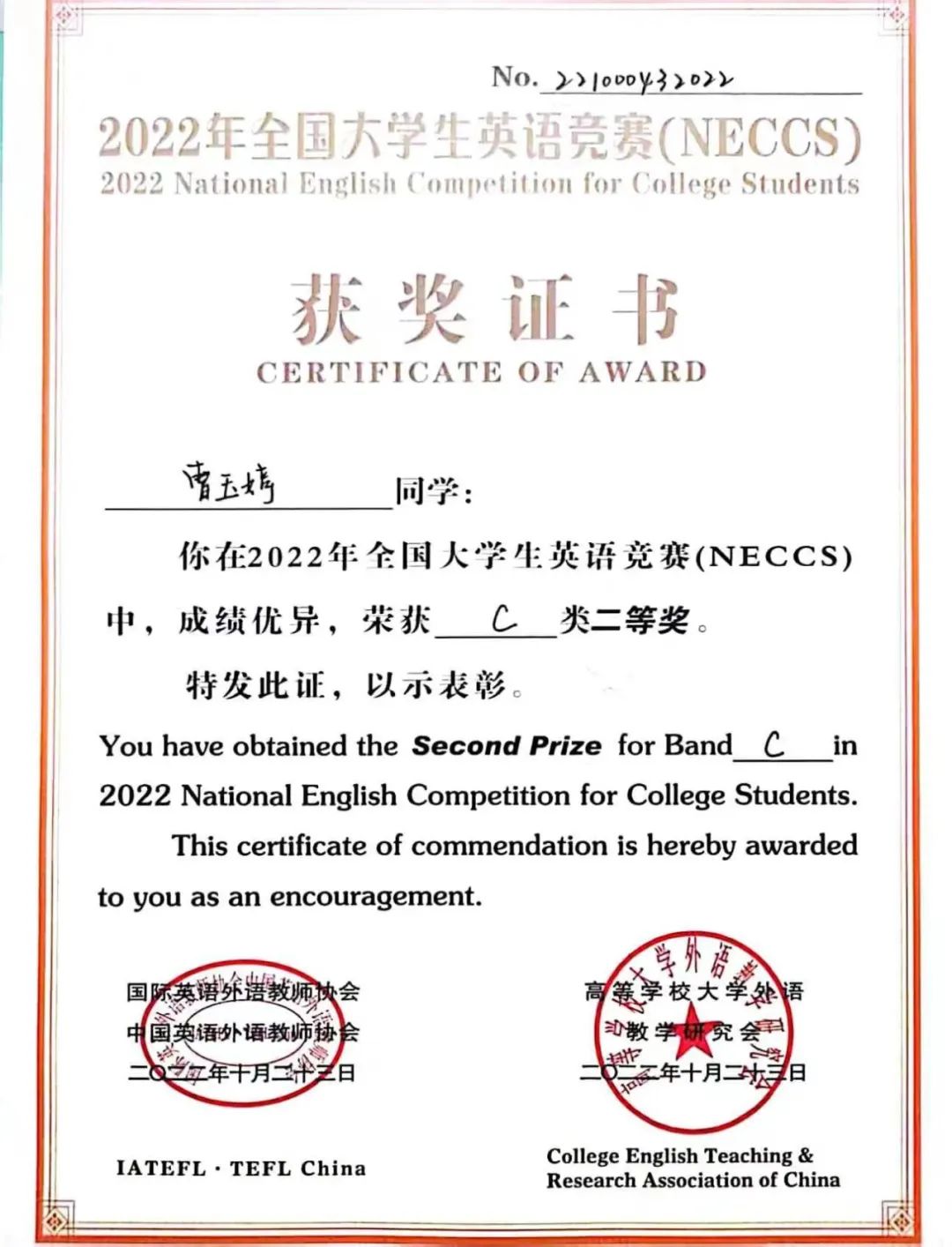 (部分同学获奖证书)