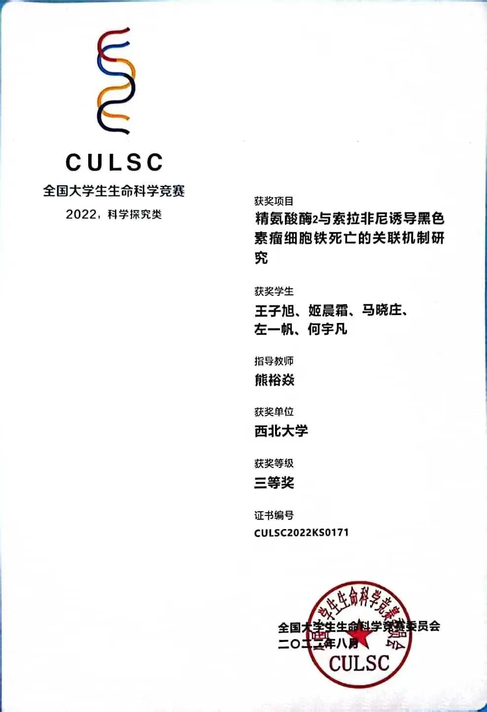 在学校的支持下,创新班的同学们脚踏实地,不断创新,奖学金拿到“手软”的同时,还实现了科研和竞赛“双丰收”。生命科学竞赛国家级三等奖、生命科学竞赛陕西省三等奖、全国大学生英语竞赛二等奖、“互联网+”大学生创新创业大赛省级铜奖等多种学科竞赛和创新创业类竞赛的多个奖项通通收入囊中。