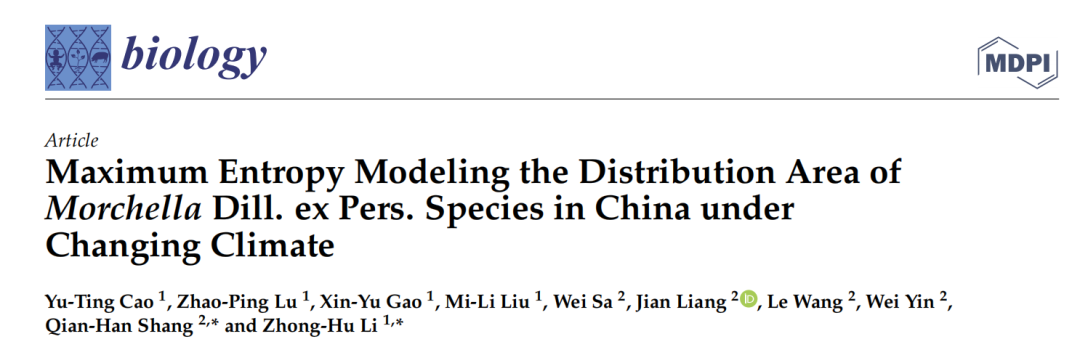在必赢bwin网页版官网导师培养机制的支持下,华大基因创新班的21名同学通过自主选择导师,进入感兴趣的课题组。在导师的引导与帮助中,曹玉婷在自己的研究领域内深耕,主持完成了利用物种分布区模拟方法预测中国野生羊菌属物种在不同历史气候背景下的分布区变迁研究工作,完成了题为Maximum Entropy Modeling the Distribution Area of Morchella Dill. ex Pers. Species in China under Changing Climate 的英文论文撰写,并以第一作者在杂志Biology(IF=5.168)上发表。