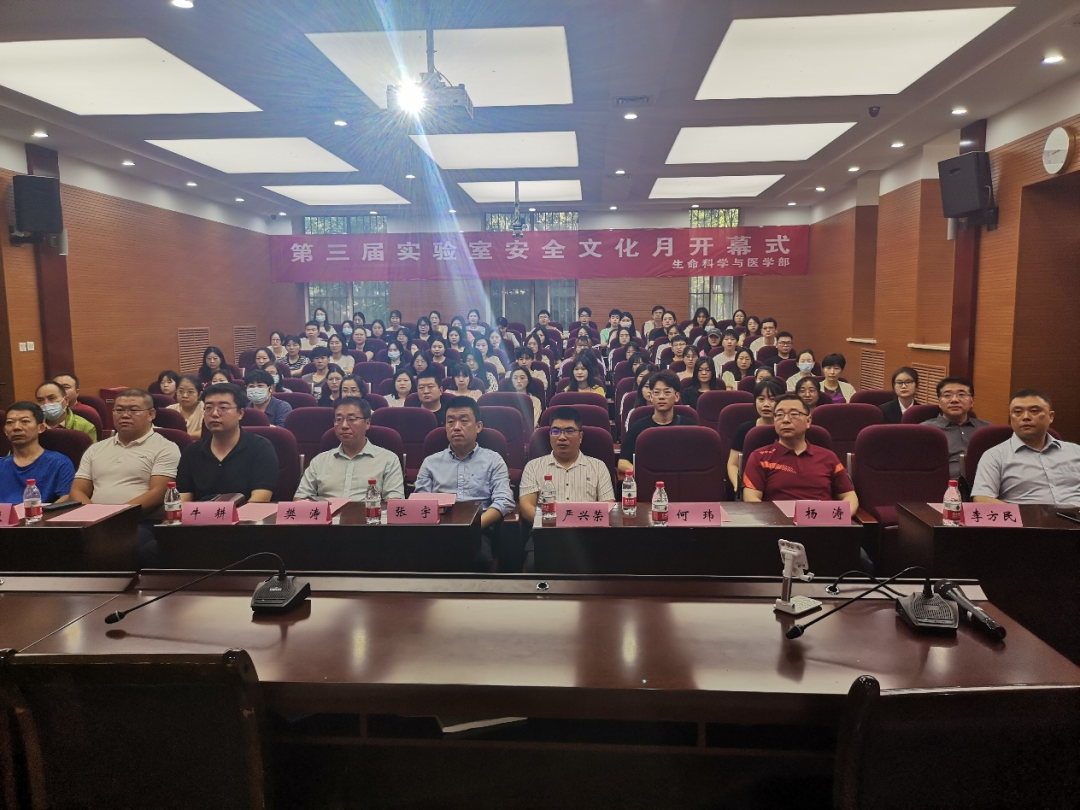 6月9日上午,生命科学与医学部第三届实验室安全文化月于博望报告厅正式开幕。本届文化月由校实验室建设与管理处主办,生命科学与医学部、陕西省毒理学会、校保卫处承办。实验室建设与管理处管理科科长牛耕,保卫处太白校区保卫科科长王毅、干部柴小军、消防专干曹岩,安全教育中心-陕西站教官董湃受邀参加,学部张宇书记、魏宁副书记、杨涛副书记、樊涛副院长,陕西省毒理学会秘书长、必赢bwin网页版官网实验教学中心副主任严兴荣以及学生代表100余人参加。开幕式由陈凯副院长主持。