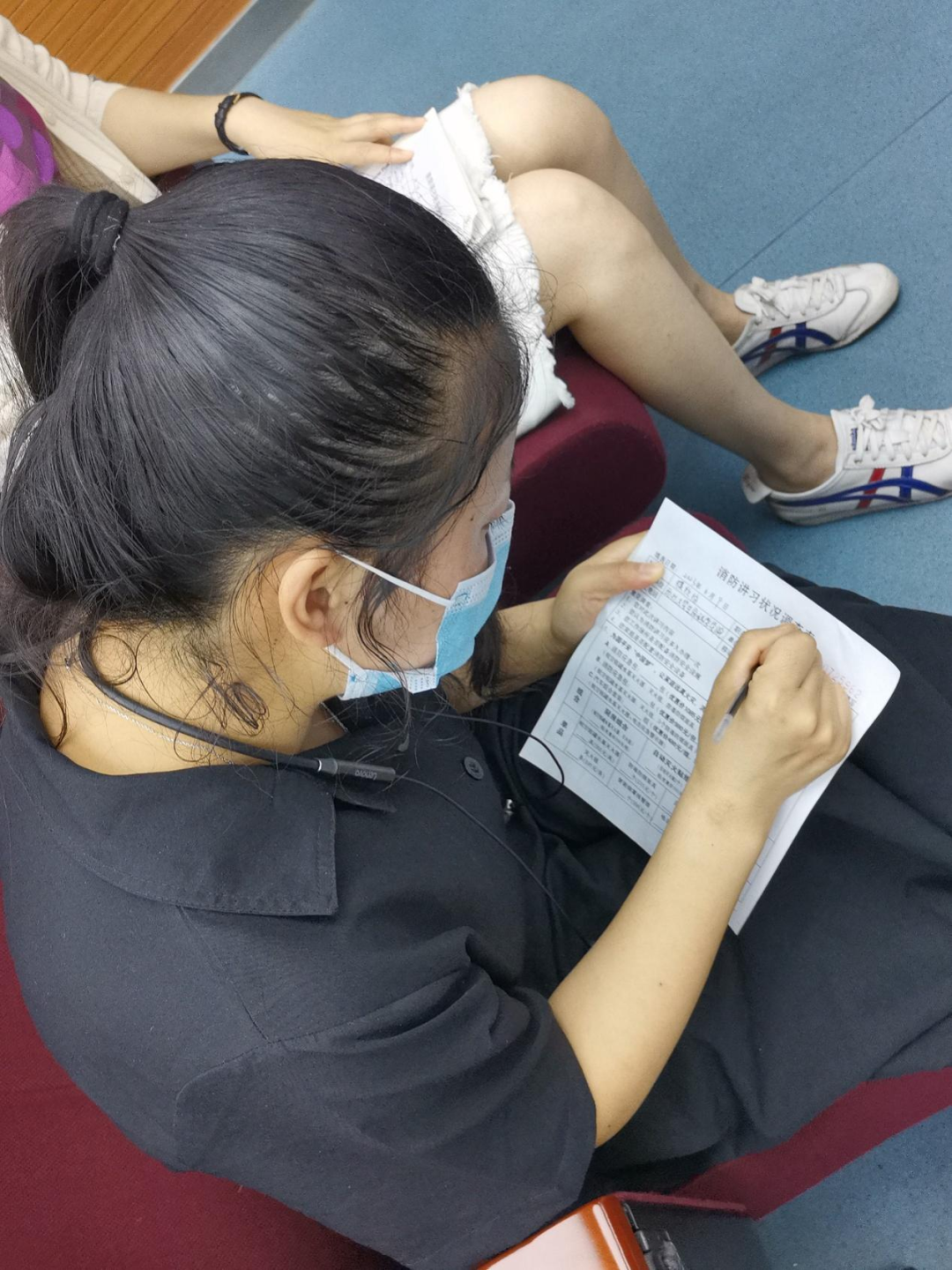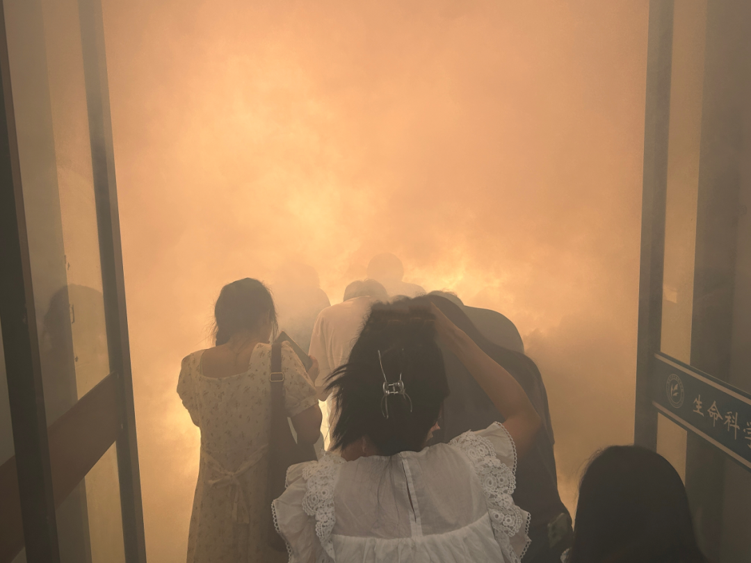 演练开始前,学部为参加演练的师生发放毛巾和矿泉水。严兴荣副主任从校园消防安全出发,结合具体案例,为全体师生讲解疏散逃生演练的正确做法及注意事项,提醒师生用打湿的毛巾捂住口鼻,弯腰低姿逃生。本次演练使用烟雾弹模拟实验室起火的浓烟环境,下午2时,演练在一声警报后正式开始。师生们在听到警报声后迅速且有序地按照逃生路线离开实验室到达指定位置集合,清点人数。