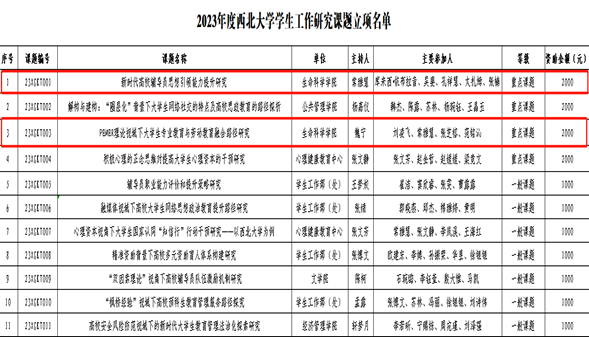 喜报!必赢bwin官网2个项目获批学校2023年度学生工作研究重点课题