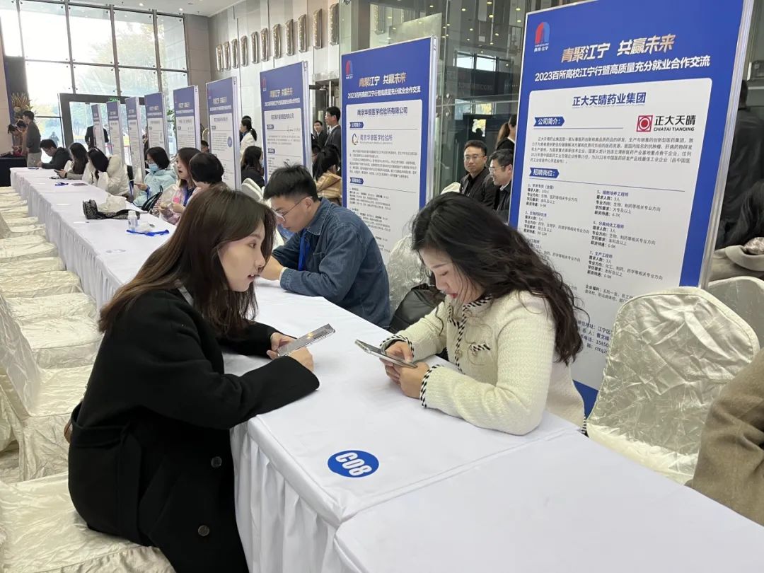 11月23日,一行共赴南京市江宁区,参加“青聚江宁 共赢未来”2023百所高校江宁行暨高质量充分就业合作论坛活动,活动由南京市江宁区人民政府、南京市人力资源和社会保障局联合举办,江宁地区300余家企业和全国各地100余所高校参加。活动开幕式上,江宁区负责人从经济总量、人才布局、产业集群、人才引进政策等方面介绍了江宁区的发展优势,播放了江宁建设的相关宣传片,推介了江宁区的毕业生就业创业环境。江宁区高质量充分就业合作对接会与平行交流专场上,魏宁等人先后与南京金斯瑞生物科技有限公司、南京擎科生物科技有限公司、南京济群医药科技股份有限公司、江苏九州通医药有限公司等业内单位现场交流,询问了公司的基本情况、岗位设置与招聘计划,积极介绍了学校的学科布局与综合地位,推荐了2024届毕业生。