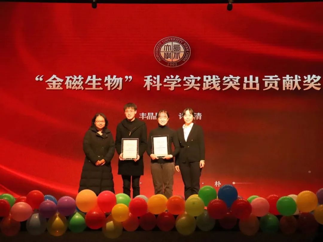 郭莉莉女士、付爱根老师、崔延力老师为金磁生物“生命之星·青春榜样”十佳研究生颁发荣誉证书