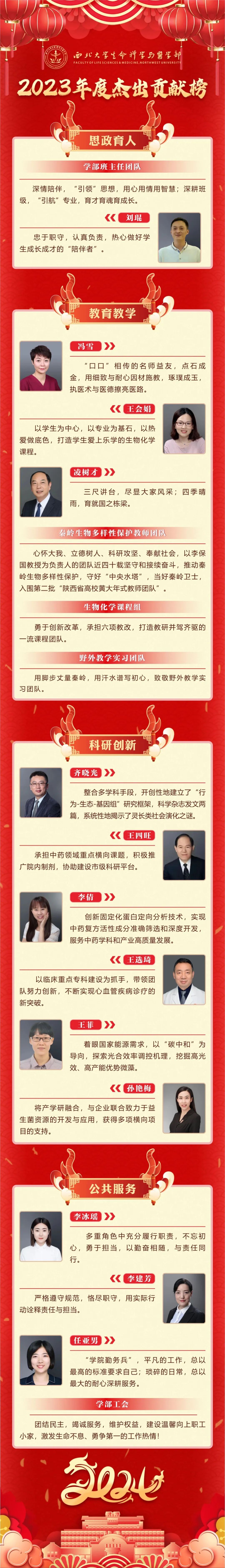 榜样!生命科学与医学部2023年度杰出贡献榜来啦