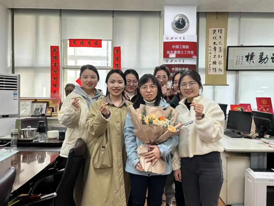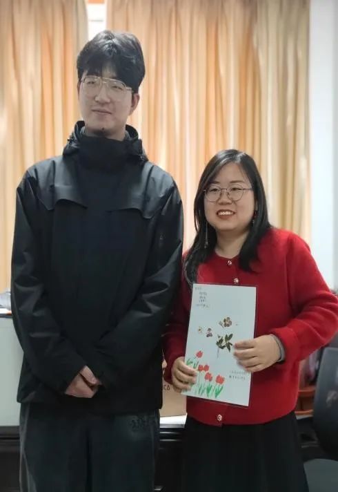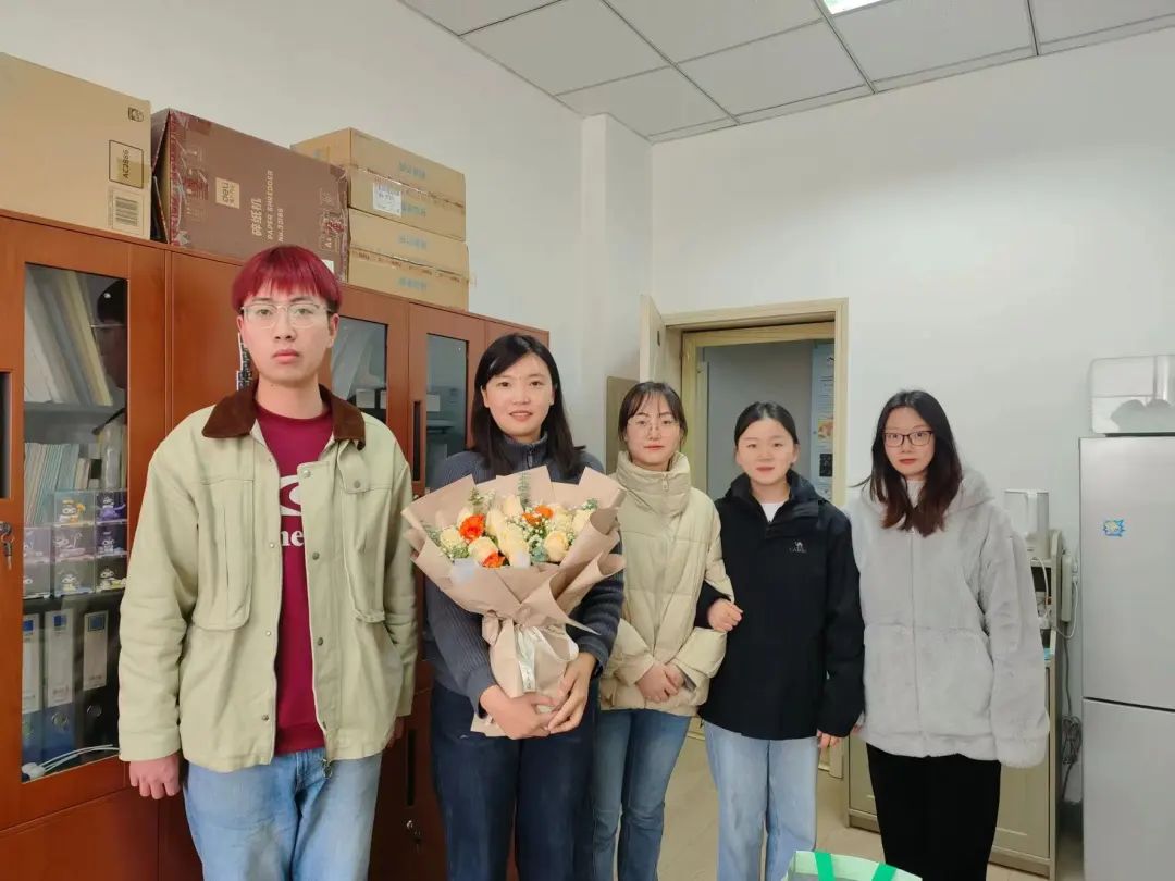 丹心映日月,赤诚浇桃花。同学们第一时间携带着这份礼物来到了各位导师的办公室,为女神导师献上火红热情、芳香四溢的鲜花和自己美好的祝福!